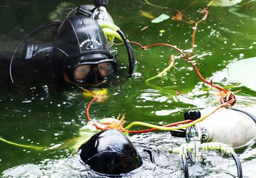 奧運(yùn)安檢"蛙人"開展緊急清理"可疑物"演練(圖)