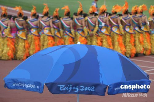 北京奧運(yùn)開幕式進(jìn)行第二次彩排 演員等待入場(chǎng)
