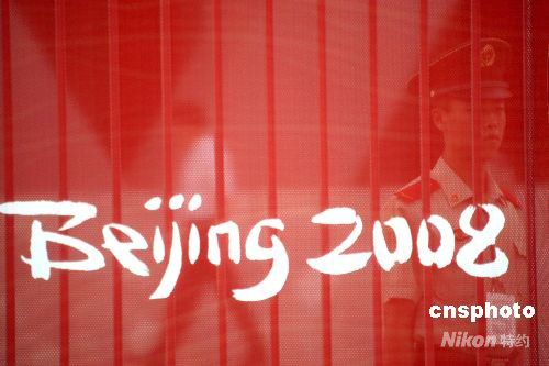 8月2日,北京奧運(yùn)會開幕式第二次彩排在“鳥巢”進(jìn)行,武警在體育場圍欄后站崗值勤加強(qiáng)安保力量。 中新社發(fā) 杜洋 攝