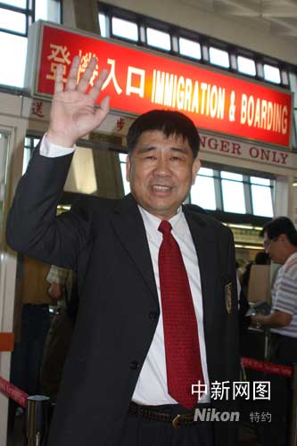 中新網(wǎng)桃園機(jī)場(chǎng)8月3日電(記者 董會(huì)峰 曾嘉)由總領(lǐng)隊(duì)蔡賜爵等率領(lǐng)的中華臺(tái)北代表隊(duì)主要成員一行50人,3日上午7時(shí)55分許搭乘華航CI603班機(jī)經(jīng)香港轉(zhuǎn)機(jī)前往北京,征戰(zhàn)2008年北京奧運(yùn)會(huì)。