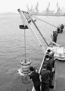 “吊放圖像聲納,開始搜索可疑目標!”一聲令下,一種專門用于水下探測的小型多功能、高分辨率圖像聲納,在4名官兵的熟練操作下緩緩入水。