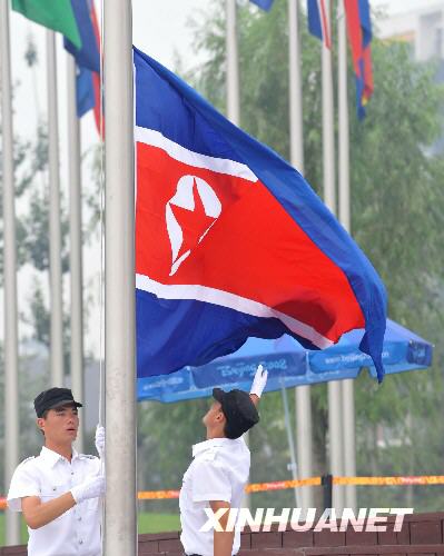 中新社北京八月四日電(記者 沈晨)朝鮮奧運(yùn)代表團(tuán)四日在北京奧運(yùn)村舉行了升旗儀式,朝鮮奧委會(huì)主席樸學(xué)先、朝鮮代表團(tuán)團(tuán)長金章山出席。