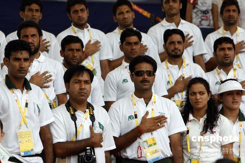 8月4日,巴基斯坦奧運代表團(tuán)在北京奧運村舉行升旗儀式。 中新社發(fā) 杜洋 攝
