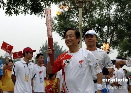 8月6日上午,奧運火炬北京站從午門開始傳遞。圖為“福娃之父”韓美林傳遞第5棒。中新社發(fā) 王東明 攝