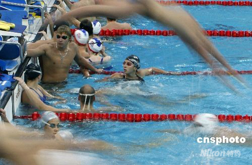 8月6日,北京國家游泳館熱鬧非凡,各國游泳高手云集“水立方”適應(yīng)場(chǎng)地,備戰(zhàn)即將開幕的奧運(yùn)會(huì)。中新社發(fā) 杜洋 攝