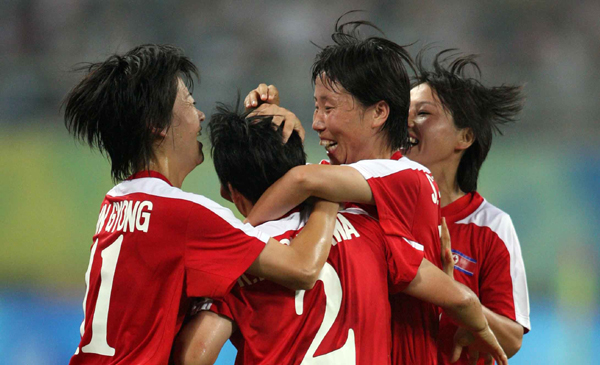 圖為朝鮮隊(duì)Sonu Kyong Sun(左)貼身防守。中新社發(fā) 張宇 攝