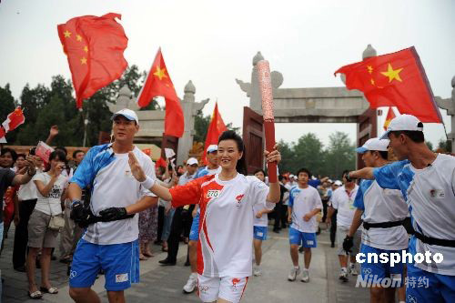 8月7日,奧運圣火繼續(xù)在北京傳遞,宋祖英在地壇傳遞當(dāng)日最后一棒火炬。 中新社發(fā) 廖攀 攝