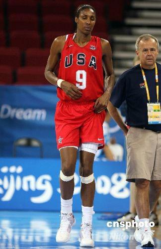 8月7日晚,雅典奧運(yùn)會(huì)冠軍美國女籃到北京奧運(yùn)會(huì)籃球比賽館--五棵松籃球館訓(xùn)練,球隊(duì)的超級(jí)中鋒萊斯麗在訓(xùn)練中舊傷復(fù)發(fā),傷勢(shì)不明。 中新社發(fā) 任晨鳴 攝