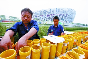 按標(biāo)準(zhǔn),用于鳥巢燃放的煙花,抽檢率高達(dá)50%,即每兩個成品出廠前,其中一個必須當(dāng)場試放。試放成品過關(guān),另一成品才能裝箱。(記者 王姝)