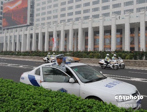 八月八日,“鳥巢”體育場(chǎng)外圍的市政工作人員負(fù)責(zé)疏導(dǎo)北京奧運(yùn)會(huì)開幕式的交通。中新社發(fā) 賈國(guó)榮 攝