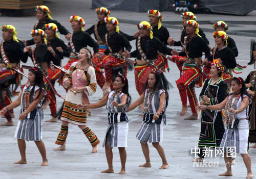 圖:高金素梅文化團隊在“鳥巢”內(nèi)表演