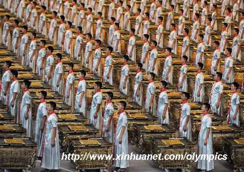 8月8日,第29屆夏季奧林匹克運(yùn)動(dòng)會(huì)在中國(guó)國(guó)家體育場(chǎng)隆重開(kāi)幕。這是開(kāi)幕式上的擊缶表演。 新華社記者劉大偉攝