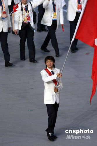 中國香港自行車名將黃金寶出任旗手。