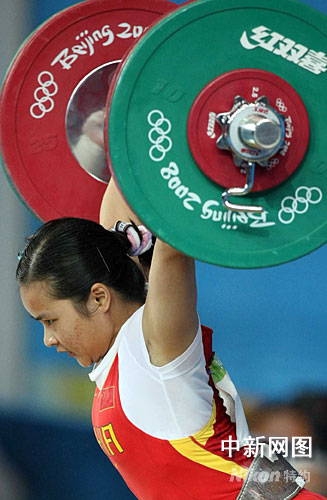 8月9日上午,中國(guó)舉重選手陳燮霞在北京奧運(yùn)會(huì)女子舉重48公斤級(jí)決賽中氣勢(shì)如虹,以總成績(jī)212公斤打破奧運(yùn)會(huì)記錄,力壓各路群芳獲得冠軍,為中國(guó)軍團(tuán)斬獲本屆奧運(yùn)會(huì)的第一枚金牌。中新社發(fā) 任晨鳴 攝