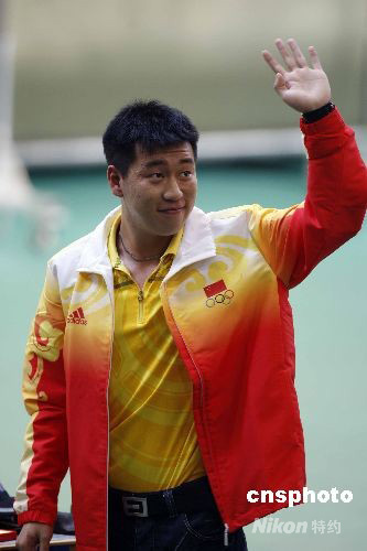 8月9日,2008年北京奧運(yùn)會射擊項目比賽在北京射擊館進(jìn)行的男子10米氣手槍決賽中,中國小將龐偉發(fā)揮出色,以688.2環(huán)勇奪金牌,幫助中國射擊隊贏得了本屆奧運(yùn)會的首枚金牌,同時這也是中國代表團(tuán)收獲的第二枚金牌。韓國選手榮國和朝鮮選手金榮洙分獲銀牌和銅牌,成績分別為684.5環(huán)和683環(huán)。 中新社發(fā) 盛佳鵬 攝