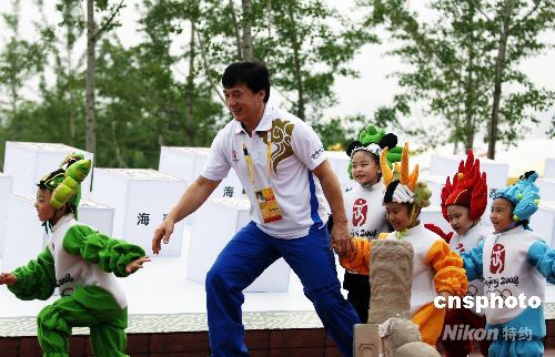 8月9日,大型文化展示活動《中國故事》在北京奧林匹克公園公共區(qū)正式開幕,在開幕式上,成龍攜帶“福娃”上場。奧林匹克公園公共區(qū)中國故事展示區(qū)的30多個祥云小屋,將展示各個省區(qū)市留存的國家級非物質(zhì)文化遺產(chǎn)。 中新社發(fā) 王東明 攝