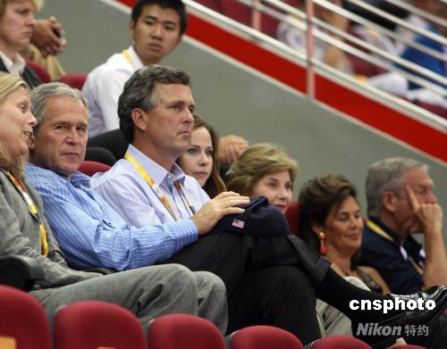 圖:美國(guó)總統(tǒng)布什現(xiàn)場(chǎng)為美國(guó)女籃加油 (2)
