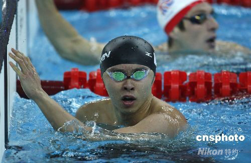 8月9日,日本選手北島康介在男子100米蛙泳預(yù)賽中,以59秒52的成績(jī)進(jìn)入半決賽。中新社發(fā) 杜洋 攝