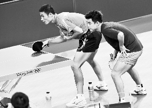 昨天下午,國乒男隊訓練了近兩個小時,比原定計劃多了差不多一小時———當然這不是照顧東道主,而是國乒隊的運氣不錯!拔覀兒苄疫\。下午3點我們正要離開時,發(fā)現有一張空球桌,還可以再訓練一小時,所以我們又練了45分鐘。我們練習了發(fā)球和多回合作戰(zhàn),盡量更適應球速和空調風。運動員在賽場上精力一般比較集中。我們不進行任何針對性練習,只是保證他們狀態(tài)良好和動作流暢!(孫海光)