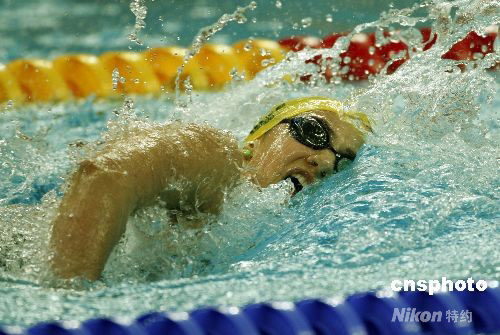 8月10日,北京奧運(yùn)會(huì)女子400米個(gè)人混合泳決賽中,澳大利亞選手賴斯打破世界紀(jì)錄并獲得冠軍。賴斯創(chuàng)造的新世界紀(jì)錄為4分29秒45。原世界紀(jì)錄是美國(guó)選手霍夫在今年6月底創(chuàng)造的4分31秒12。 中新社發(fā) 杜洋 攝