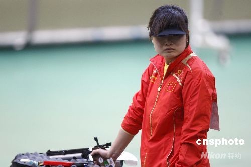 8月10日,在北京奧運會女子10米氣手槍決賽中,中國選手郭文珺奪得冠軍,并以492.3環(huán)的成績打破奧運會紀(jì)錄。這是中國軍團在本屆奧運會上獲得的第三塊金牌。圖為郭文珺在比賽中。中新社發(fā) 盛佳鵬 攝