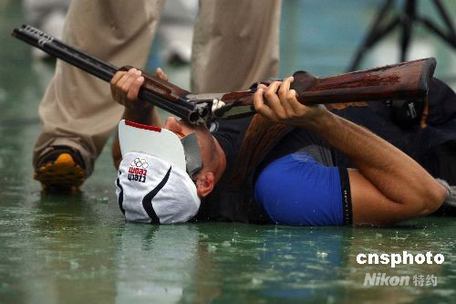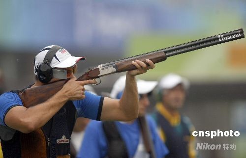 8月10日,2008年北京奧運(yùn)會進(jìn)入第二個(gè)比賽日,在男子飛碟多向決賽中,捷克選手科斯特萊茨基以146中的成績奪取金牌,這也是捷克代表團(tuán)在北京奧運(yùn)會上所贏得的第二枚金牌。 中新社發(fā) 盛佳鵬 攝