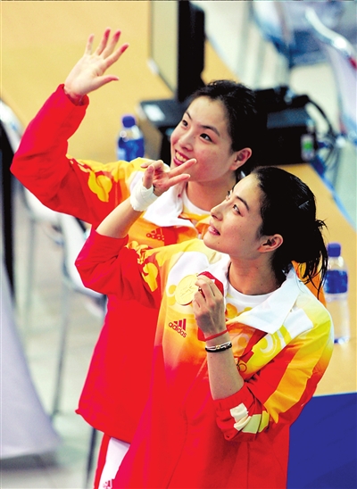 一樣俏皮的馬尾辮,一樣優(yōu)美的身姿……郭晶晶和吳敏霞,這一對(duì)夢(mèng)幻組合姐妹花,如同精靈一般,盡情綻放在昨日午后的水立方。