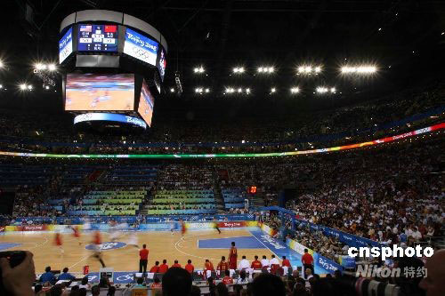 圖:北京奧運(yùn)會(huì)中美男籃大戰(zhàn) 座無虛席