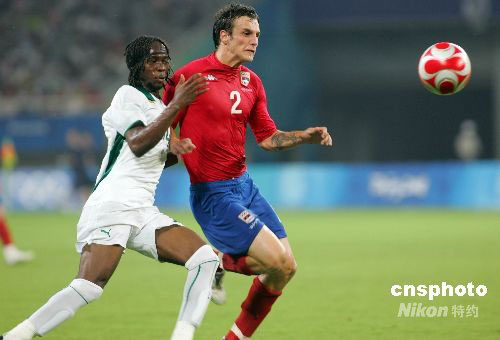8月10日,北京奧運(yùn)會(huì)上海足球分賽場(chǎng)男足預(yù)賽A組第二輪,科特迪瓦VS塞爾維亞的比賽在上海體育場(chǎng)進(jìn)行。最終,首次參加奧運(yùn)會(huì)的科特迪瓦隊(duì)以4:2戰(zhàn)勝塞爾維亞。中新社發(fā) 湯彥俊 攝