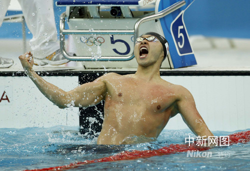 8月11日,在北京奧運(yùn)會游泳男子100米蛙泳比賽中,日本選手北島康介以58.91秒成績打破世界紀(jì)錄奪得該項目冠軍。中新社發(fā) 杜洋 攝
