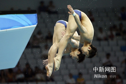 8月11日,中國組合林躍、火亮獲得北京奧運會男子10米雙人跳臺冠軍。中新社記者 杜洋 攝