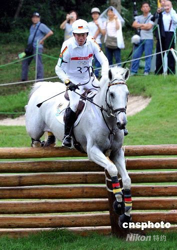 八月十一日,北京奧運(yùn)馬術(shù)三項(xiàng)賽個(gè)人賽之越野賽在香港上水雙魚河舉行,結(jié)果德國選手欣里希·彼得·羅邁克在盛裝舞步賽及越野賽后暫時(shí)在績分上領(lǐng)先。圖為他與坐騎“馬里烏斯·福格特”在越野賽上成功飛躍跨欄。 中新社發(fā) 鄧慶樂 攝