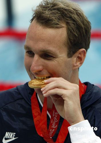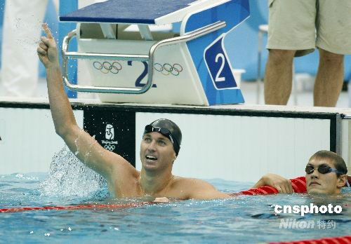 8月12日,北京奧運(yùn)會男子100米仰泳決賽,美國選手佩爾索爾以52秒54的成績打破今年7月由他自己創(chuàng)造的52秒89的世界紀(jì)錄,獲得金牌。中新社發(fā) 杜洋 攝