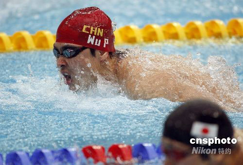 8月12日,中國選手吳鵬以1分54秒93的成績(jī),順利晉級(jí)北京奧運(yùn)會(huì)男子200米蝶泳決賽。中新社發(fā) 杜洋 攝