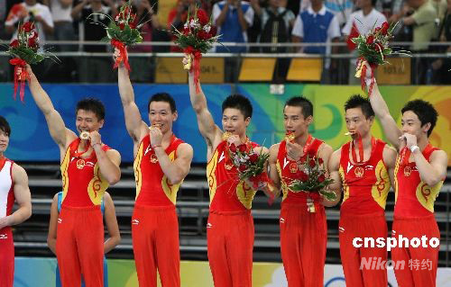 8月12日,在國家體育館舉行的男子體操團(tuán)體決賽中,中國隊以總分286.125分力壓老對手日本隊,領(lǐng)先第二名7分多的優(yōu)勢奪得體操男子團(tuán)體的冠軍,為中國體操隊贏得了開門紅,這是中國代表團(tuán)在本屆奧運(yùn)會上的第10枚金牌。 中新社發(fā) 武仲林 攝