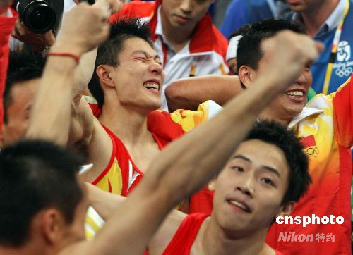 8月12日上午,北京奧運會體操男子團體決賽在國家體育館展開,中國男子體操隊繼悉尼奧運之后再次登頂,以286.125 分獲得金牌,立下汗馬功勞的李小鵬激動萬分。
