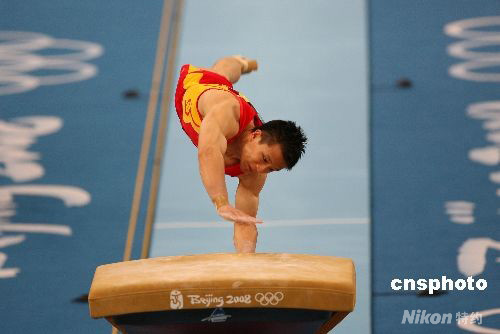 8月12日,中國(guó)隊(duì)在北京奧運(yùn)會(huì)體操男子團(tuán)體比賽中以286.125分勇奪金牌。中新社發(fā) 武仲林 攝