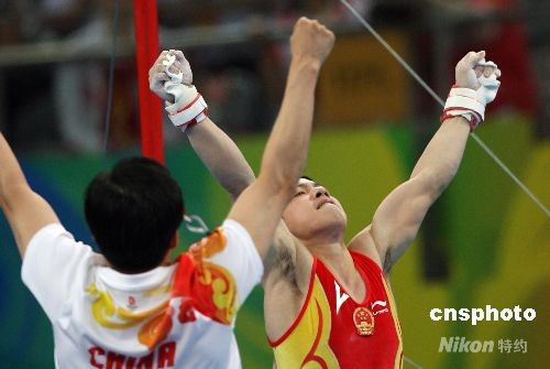 圖:中國(guó)勇奪奧運(yùn)體操男團(tuán)金牌