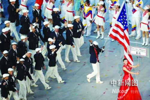 圖為周旦妮帶領(lǐng)美國隊(duì)入場(chǎng)。