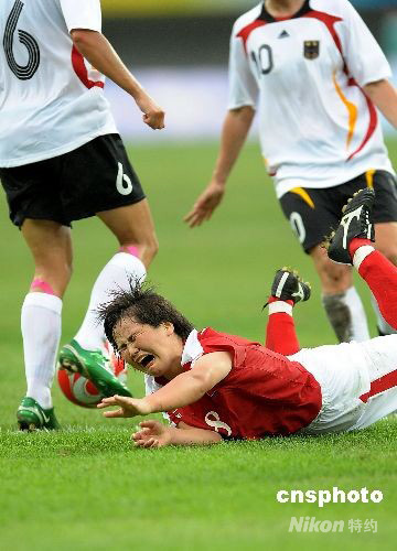 圖為德國(guó)女足11號(hào)隊(duì)員攻進(jìn)一球立下戰(zhàn)功。