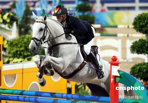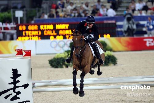 八月十二日,在香港舉行的奧運馬術(shù)三項賽進行最后一項場地障礙賽,誕生團體賽金牌。 中新社發(fā) 洪少葵 攝