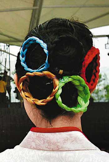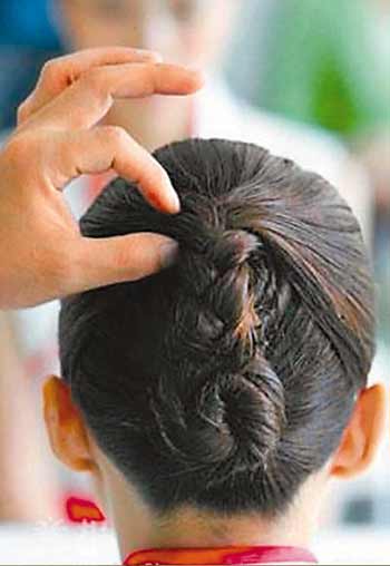 這款比較突出大的包發(fā),突出飽滿的熱情。此外,發(fā)型的線條動(dòng)感十足,和旗袍的風(fēng)格也比較一致。另外,發(fā)型師特別搭配了奧運(yùn)五環(huán)的小配飾,使發(fā)型脫離了單調(diào)的感覺(jué),又體現(xiàn)了奧運(yùn)元素。這個(gè)小飾品別在頭的側(cè)面,頒獎(jiǎng)時(shí)觀眾很容易看到。