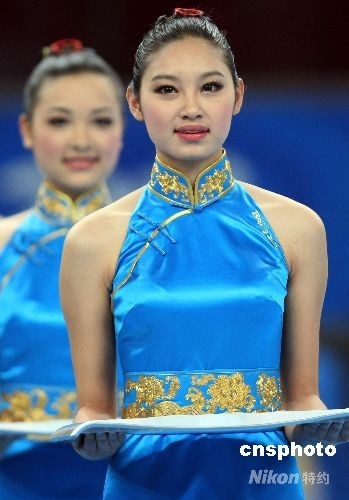 北京奧運會體操比賽在奧林匹克公園內(nèi)的國家體育館舉行,許多觀眾與記者認為,這里的禮儀小姐最美。中新社發(fā) 任晨鳴 攝