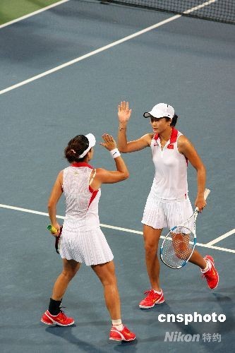 8月12日晚,在全場觀眾的吶喊助威聲中,鄭潔、晏紫力克斯洛伐克組合漢圖楚娃、胡薩洛娃,進入女雙16強。中新社發(fā) 王韶驊 攝