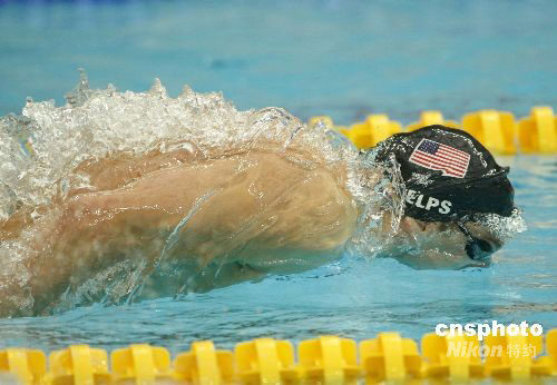 8月13日,在國家游泳中心水立方游泳館,2008年北京奧運會男子200米蝶泳決賽,美國菲爾普斯以1分52秒03打破由他創(chuàng)造的1分52秒09的世界紀錄,奪得本屆奧運第4枚游泳金牌。至此,菲爾普斯共奪得奧運十金,創(chuàng)造歷史。中新社發(fā) 杜洋 攝