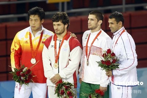 8月13日,在北京奧運會摔跤男子古典式74公斤級冠亞軍決賽中,格魯吉亞選手馬努恰爾·克維克利亞以2-0戰(zhàn)勝中國選手常永祥,獲得男子古典式74公斤級金牌,常永祥獲得銀牌。保加利亞選手亞沃爾·亞娜基耶夫與法國選手克里斯托夫·蓋諾并列獲銅牌。中國選手常永祥獲得這枚銀牌的同時,也創(chuàng)造了中國男子摔跤隊在奧運會比賽的最佳成績。在此之前,中國男子摔跤隊在奧運會上的最佳成績是第三名。中新社發(fā) 盛佳鵬 攝