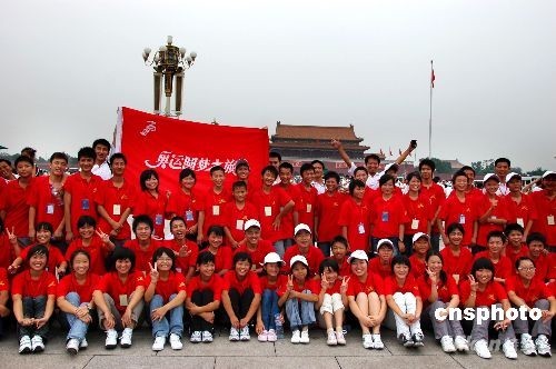 圖:百余名孤兒圓奧運(yùn)夢(mèng)天安門前留影