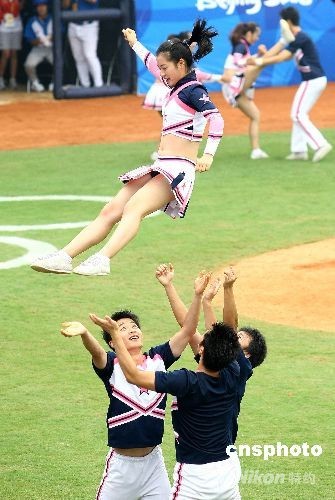 8月13日,2008北京奧運(yùn)棒球賽在五棵松體育中心舉行,中場休息時(shí)大會(huì)安排啦啦隊(duì)表演熱鬧非常。中新社發(fā) CNAsports 攝