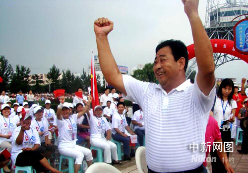 中新網(wǎng)新泰8月13日電(記者 胡洪林 張璐 通訊員 褚成東)在今天下午第29屆奧運(yùn)會(huì)男子雙人3米跳板決賽過(guò)程中,遠(yuǎn)在家鄉(xiāng)的王峰父母一直緊張地在山東省新泰市中心電視塔廣場(chǎng)透過(guò)大屏幕觀看兒子的比賽。當(dāng)王峰和秦凱雙人組合獲得金牌一霎那,王峰52歲的父親王道軍激動(dòng)地從座椅上站了起來(lái),揮舞雙拳高聲為王峰加油,為北京加油,為奧運(yùn)加油。