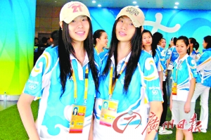 易茗說,之所以看好她們,是因?yàn)榻忝脗z的笑容很純很有特色,符合奧組委的選拔要求。由于是雙胞胎,姐妹倆心靈相通,做起事來靈氣十足。在易茗的印象里,她們是禮儀小姐中的特例,“她們當(dāng)中大多數(shù)是在校的大學(xué)生,還沒走上社會,她們兩姐妹能舍棄很多東西做志愿者很難得!